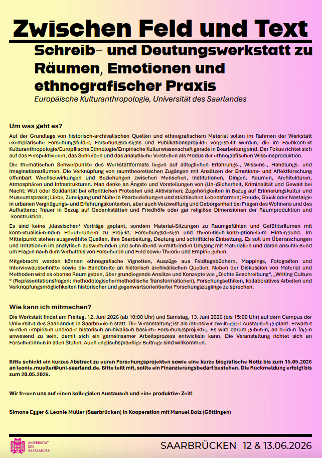 Gast: J.-Prof. Dr. Simone Egger (Saarbrücken, Europäische Kulturanthropologie/Historische Anthropologie)