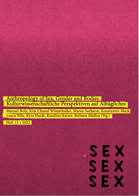 13 Bolz, Manuel/Winterhalter, Kim Chanel/Sacherer, Maren/Mack, Konstantin/Völz, Laura/Hardt, Kyra/Kaiser, Karoline/Mallon, Stefanie (Hrsg.): Anthropology of Sex, Gender and Bodies. Kulturwissenschaftliche Perspektiven auf Alltägliches (= Hamburger Journal für Kulturanthropologie (HJK) Nr. 15. 1. Auflage 2022; 2. Auflage 2023. Hamburg: University Press. Link: https://journals.sub.uni-hamburg.de/hjk/article/view/2054.